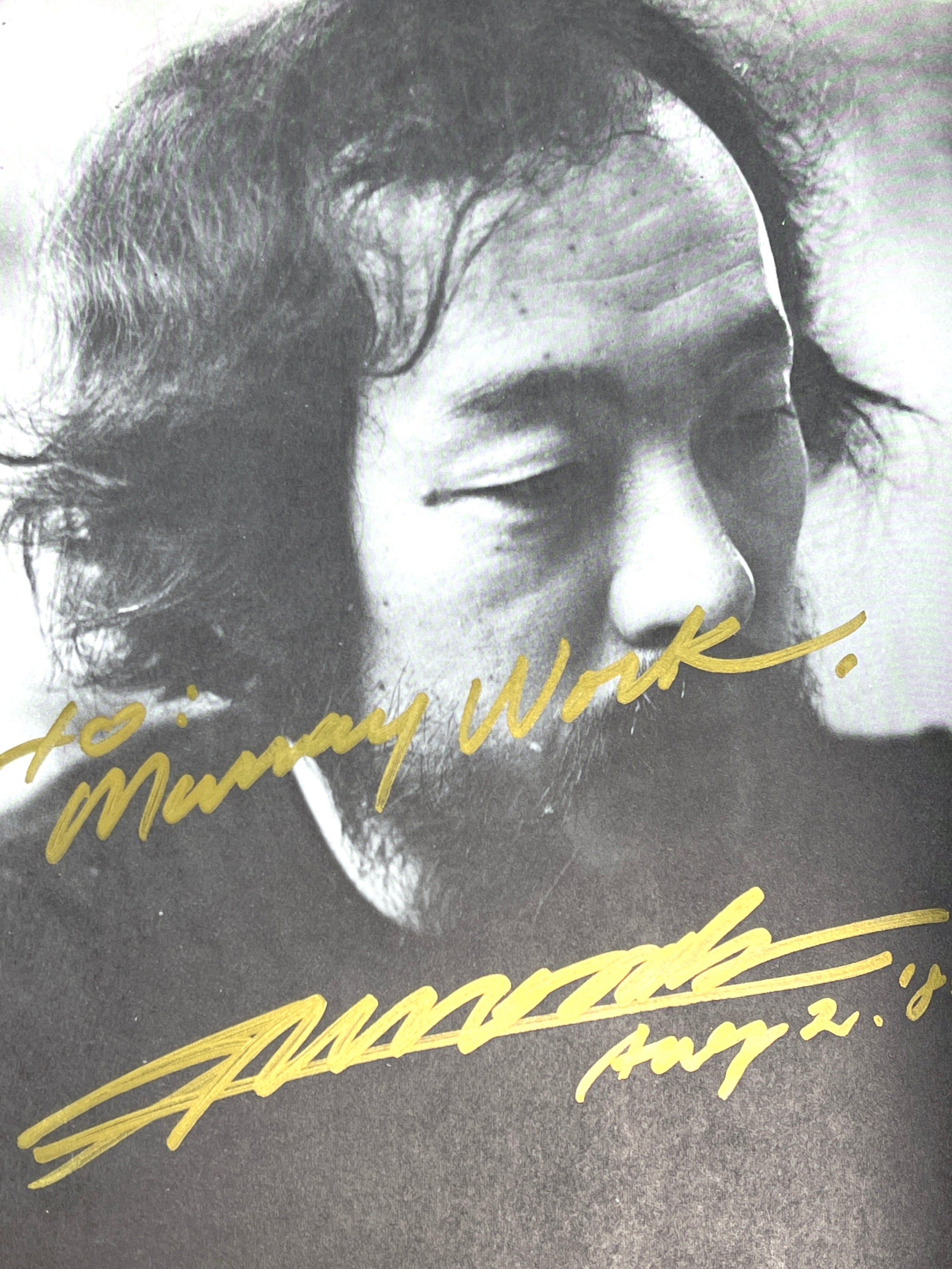 Hardcover in yellow paper. Minor soiling to back panel and half title page. Signed in gold marker to the frontispiece. Very Good white pictorial dust jacket, some wear, light soiling, and minor sunning to edges, now in Mylar. 86 pp. Includes full-color reproductions of Kurosaki's woodcut works. Explores the artistic process and technique used by Japanese artist, Akira Kurosaki, in his creation of abstract, colorful woodcut prints.