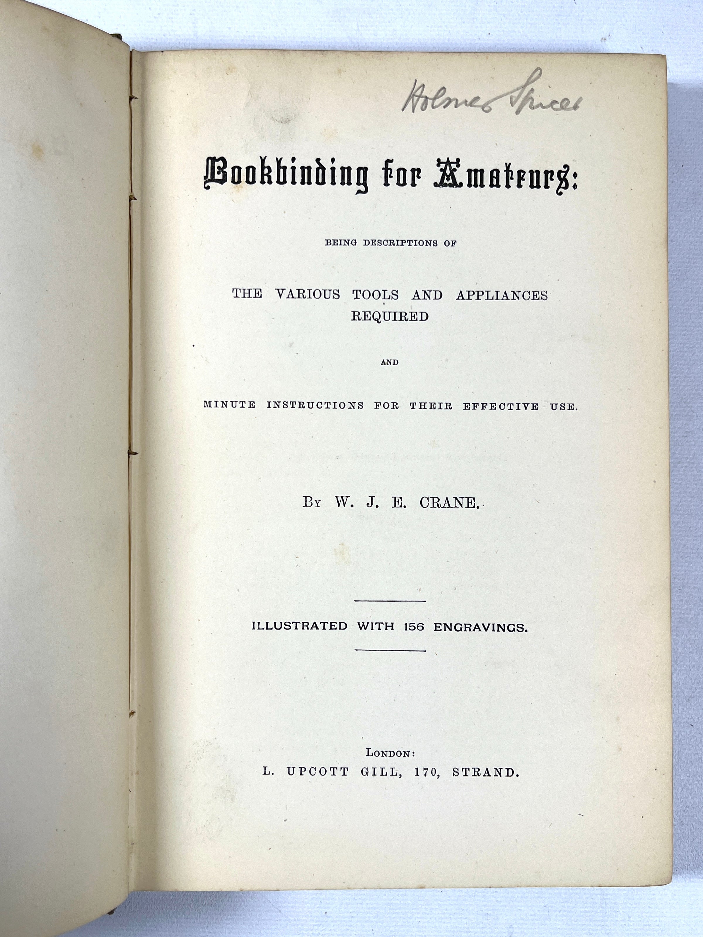 CRANE, W. J. E, Bookbinding for Amateurs, c. 1887 Very Good -