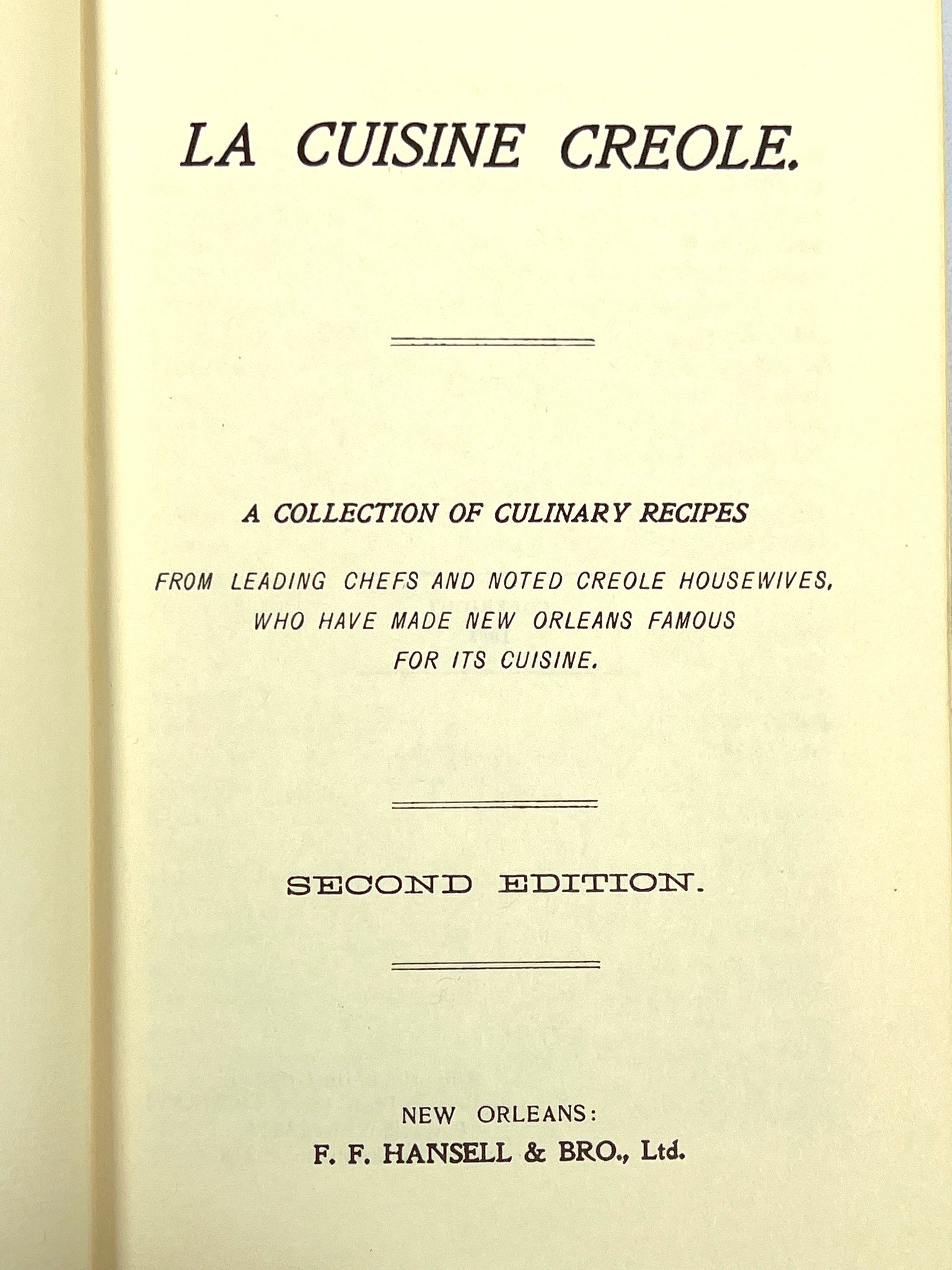 La Cuisine Creole: A Collection of Culinary Recipes, 2nd Ed, 1966, Near Fine HC facsimile
