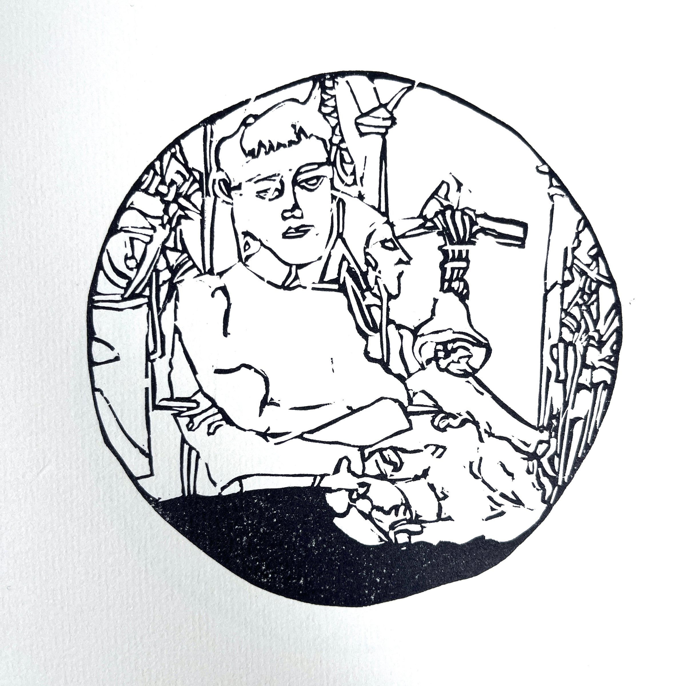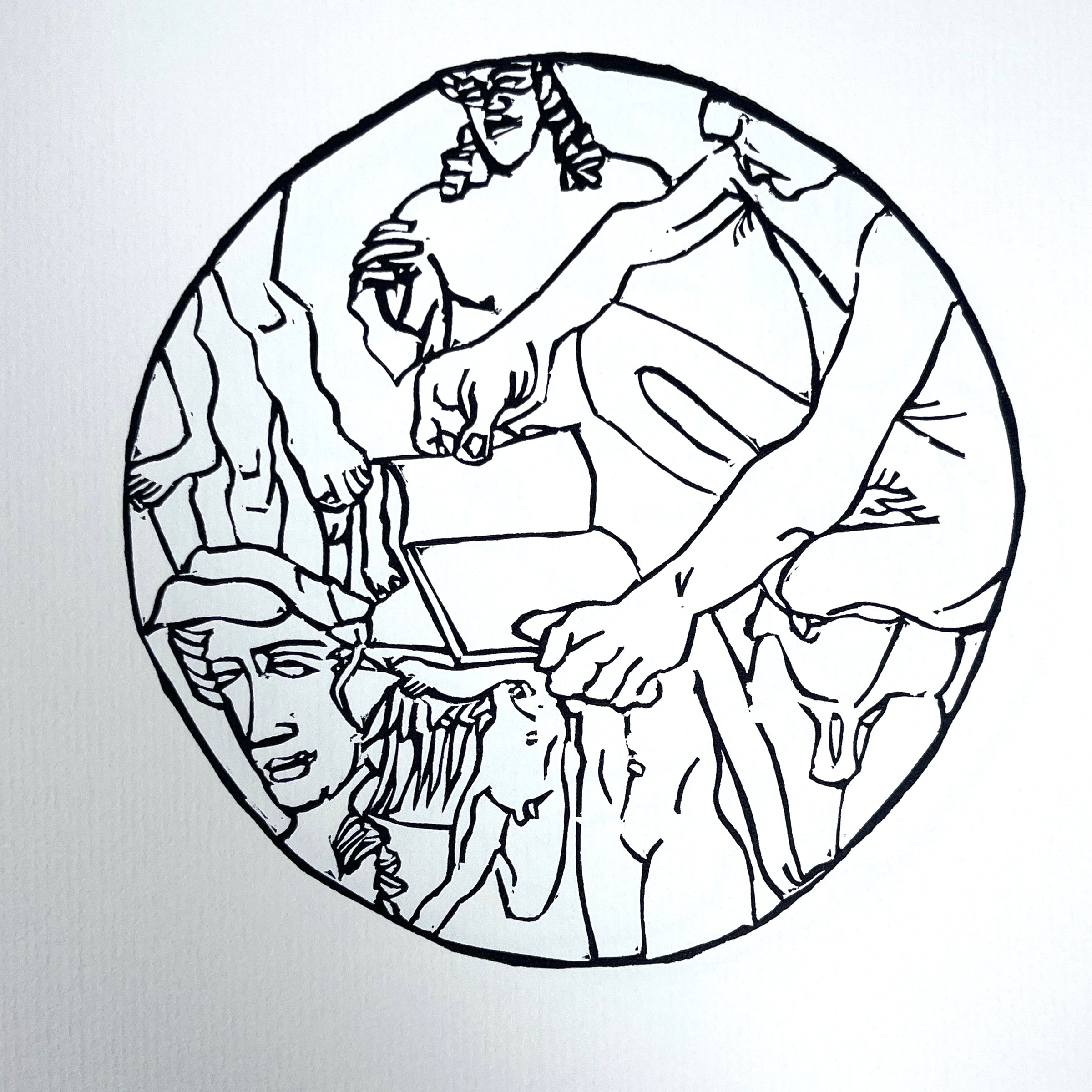 Fine quarto sienna card stock portfolio, cream label affixed to front. 42 leaves laid in loose as issued. Title page with limitation number two stamps in red ink, Barton and Nelson's signatures in pen. 42 circular block prints in black ink printed by Andrew Hoyem on Curtis rag paper. Barton's architectural facades, male nudes, and portraits, including members of Barton's inner circle like his publisher, Harold La Vigne, his lover, filmmaker Kenneth Anger, and his collaborator, David Archer Nelson. Scarce in the trade in such excellent condition. Provenance: from the library of a private collector and friend of Nelson.