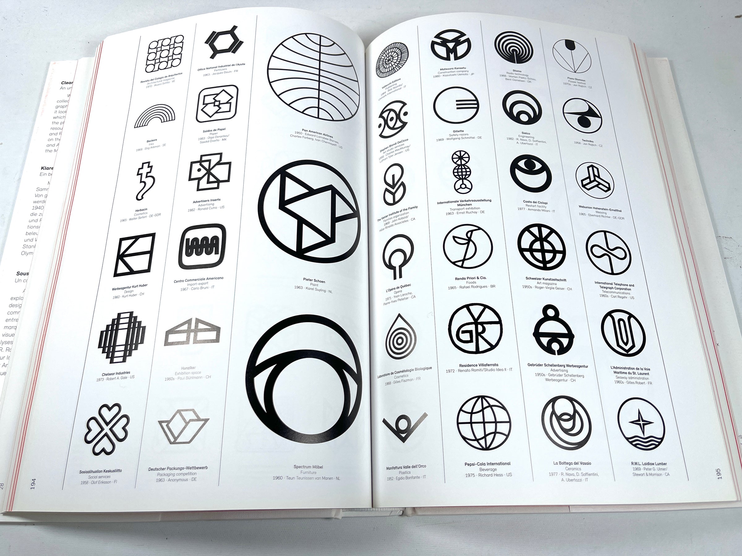 Large hardcover in white cloth w/ blindstamped designs to front panel, in Very Good red & white dustjacket w/ minor scuffs and wear to edges. Binding Tight. Compendium of over 6000 corporate logos from 1940 to 1980. An essential graphic design reference.