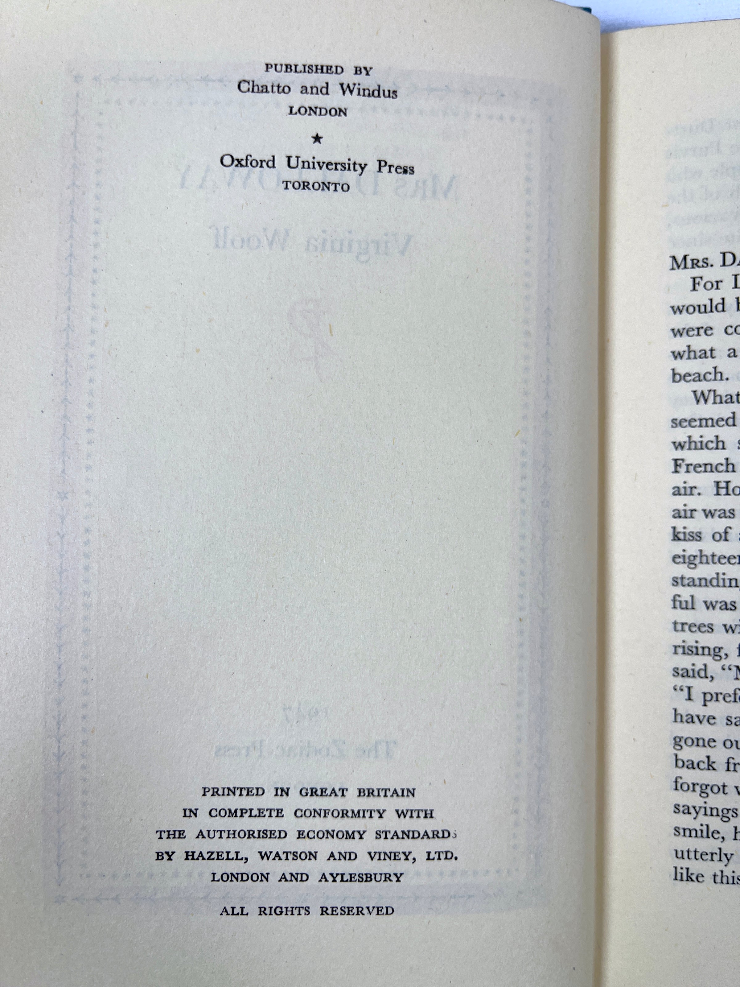 Virginia Woolf, Mrs. Dalloway, The Zodiac Press, 1947, Very Good hardcover, no dust jacket