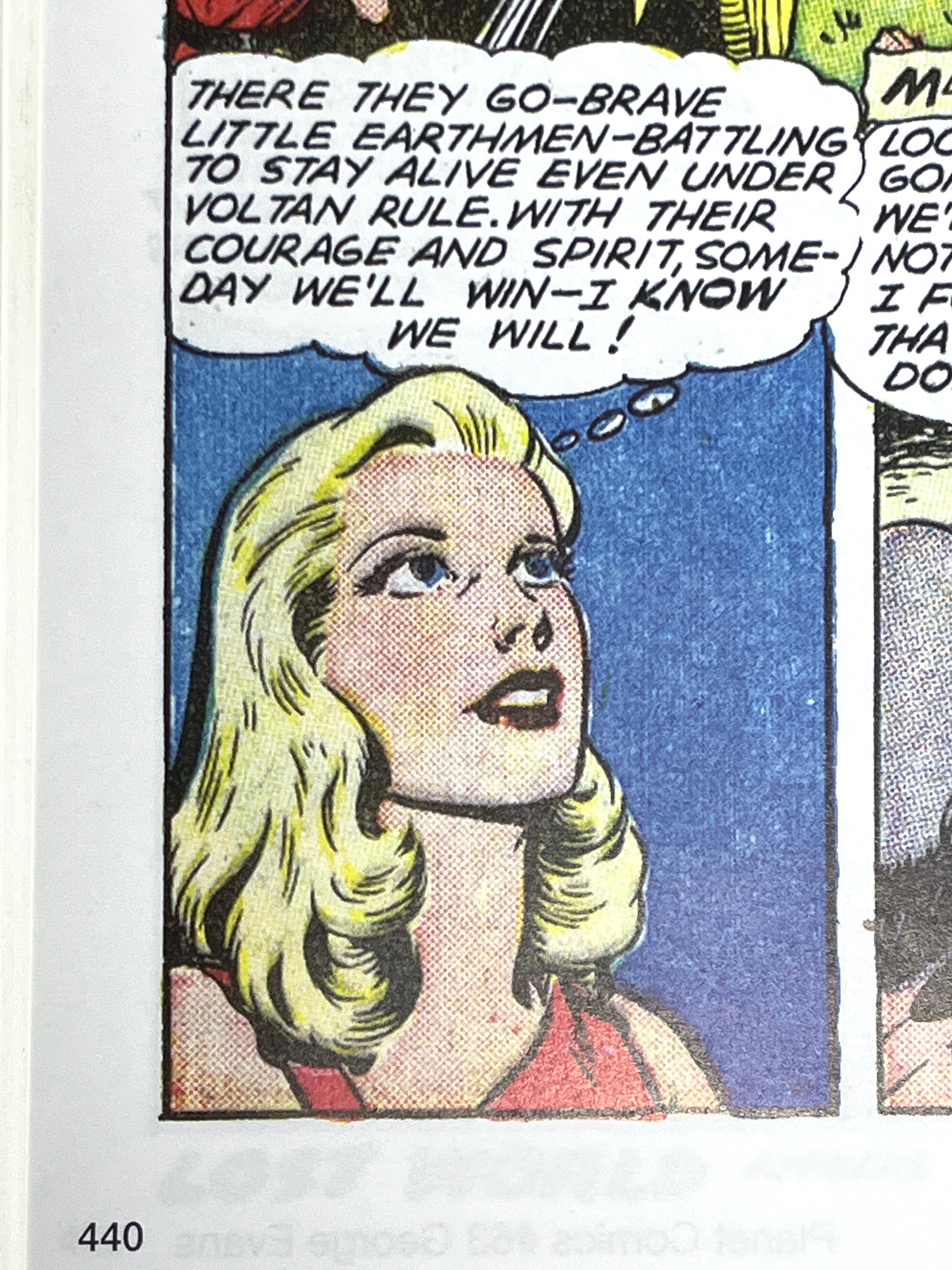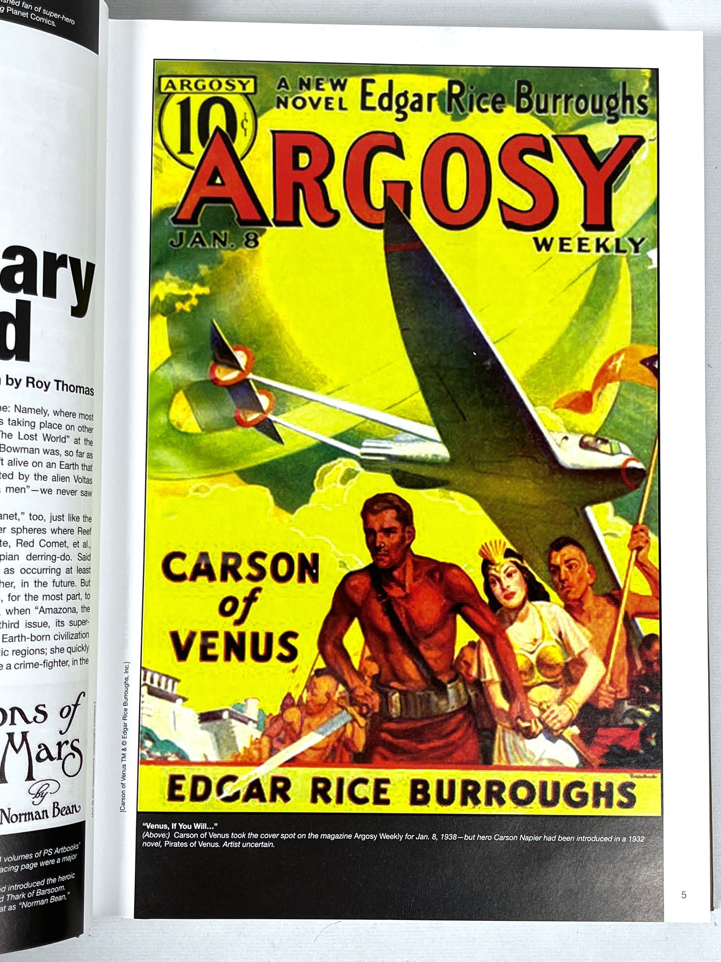 First Edition, hardcover in pictorial metallic gold paper. Slight cocking to spine, light wear to tips, and small bump to bottom edge of front panel. 456 pp. Includes pictorial endpapers, full-page, full-color reproductions of hundreds of comic panels and illustrations. This book brings together collected works from the pages of the Golden Age science fiction comic book, Planet Comics, from November 1942 to Spring 1950, including Issues 21 through 64. Also included is a Foreword by Roy Thomas, the American comic book writer, editor, and first successor to Marvel Comics' Stan Lee, as well as six biographies by David Saunders on the comic artists, including Nick Cardy and Lily Renée. Comics originally published in magazine form by American pulp-magazine publisher, Fiction House.
