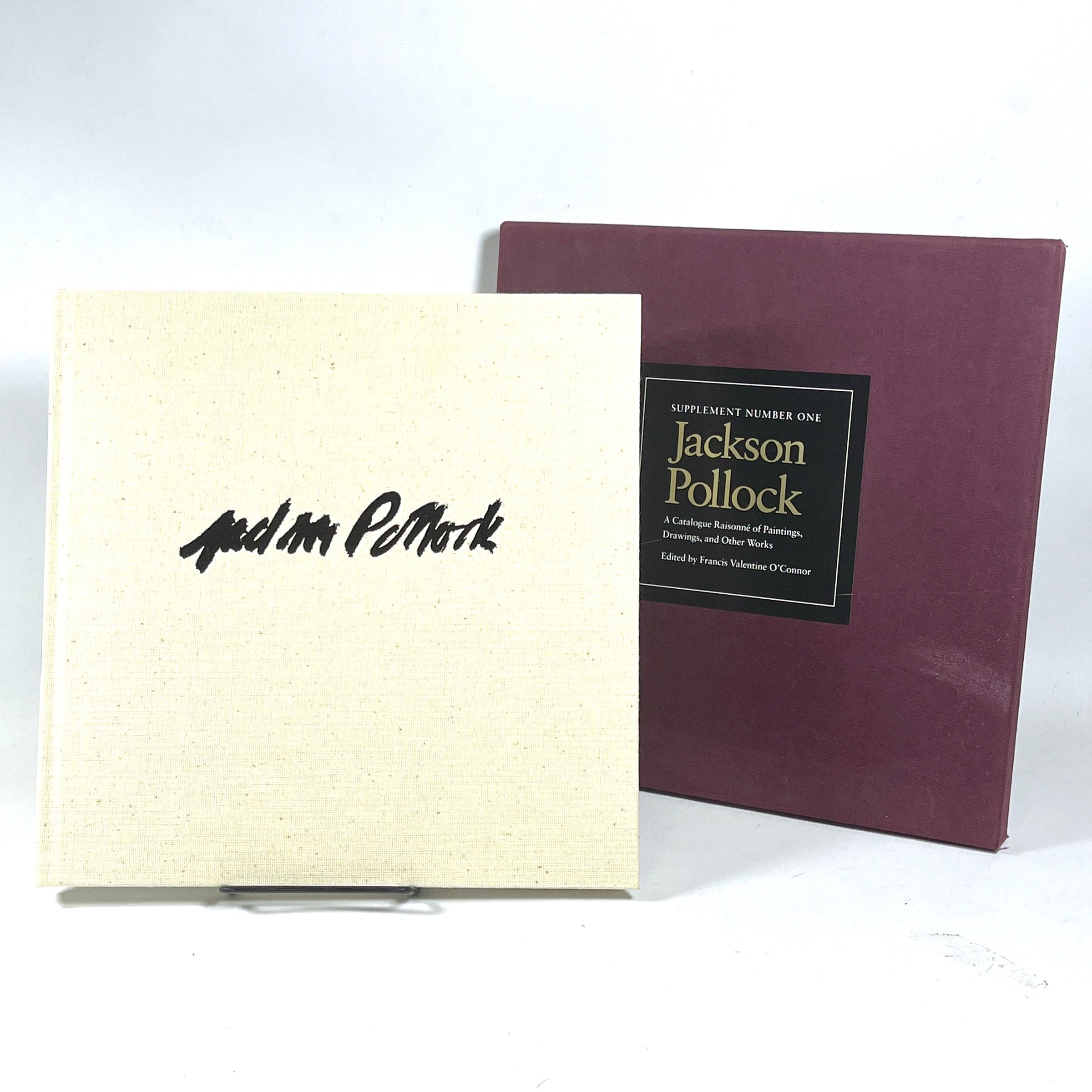 Cream colored buckram boards, title stamped in gold and black to spine, facsimile signature stamped in black to front panel, tight binding, interior clean, crisp and bright, no dust jacket as issued, in Good burgundy cloth slipcase w/ spots, stains, scrapes, and fading to front and rear, printed title label affixed to center front. First supplement to the authorized four volume catalog raisonne, updating and adding to the documentation of Pollock’s complete works.