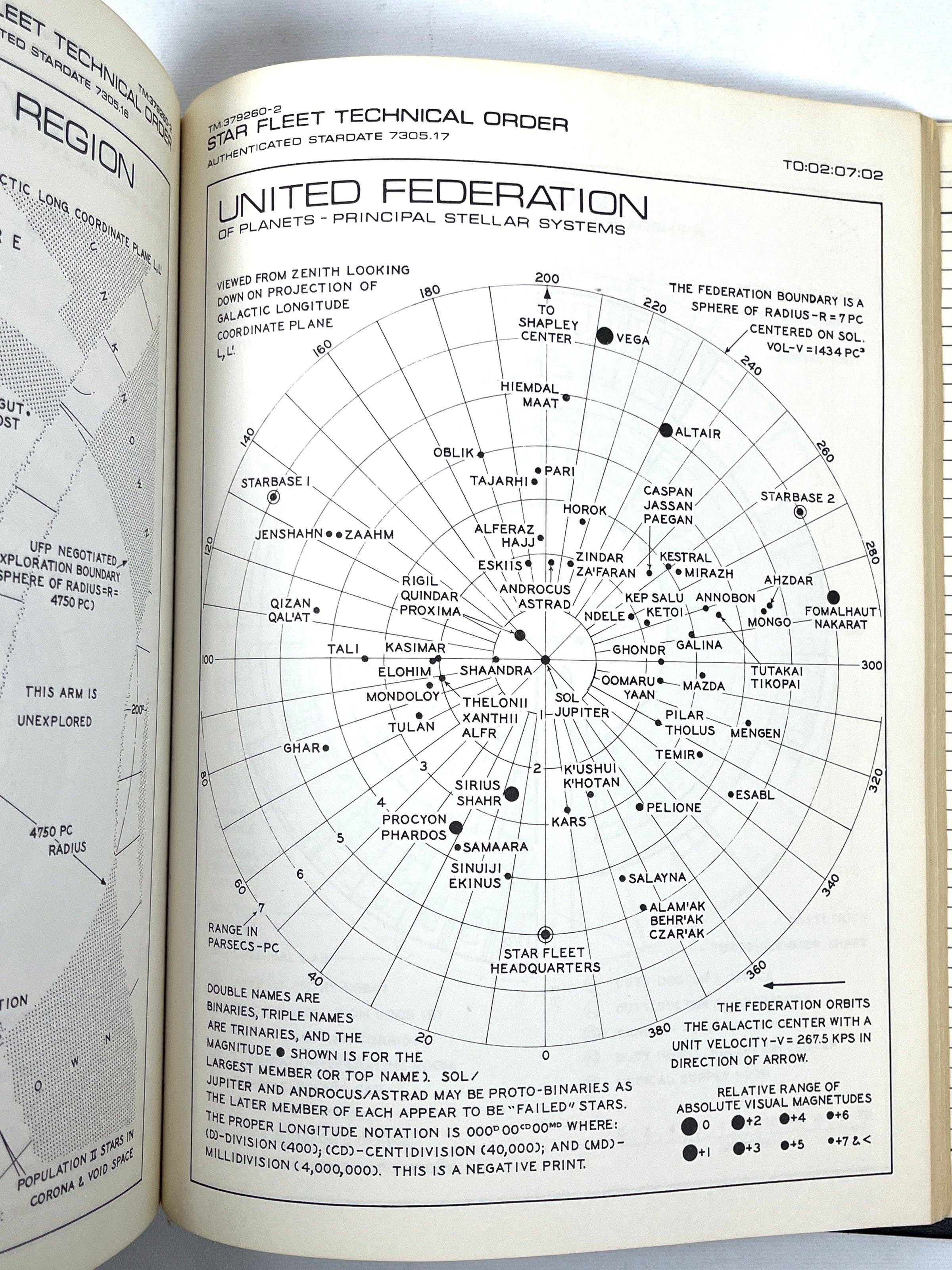 Very Good + quarto, red with black lettering to front cover and spine, signed in marker on front pastedown by George Takei, housed in a black vinyl portfolio with clear insert packets, light edgewear, 194 pp. Two cast photos in full-color laid in loose, one from Star Trek and the other from Star Trek: Next Generation. Black-and-white diagrams that show symbols, rankings, blueprints, uniforms, weapons, and technology. An extraordinary technical manual that offers an in-universe look at the design, structure, and operations of Starfleet, reflecting the franchise’s lasting influence on science fiction and fan culture.