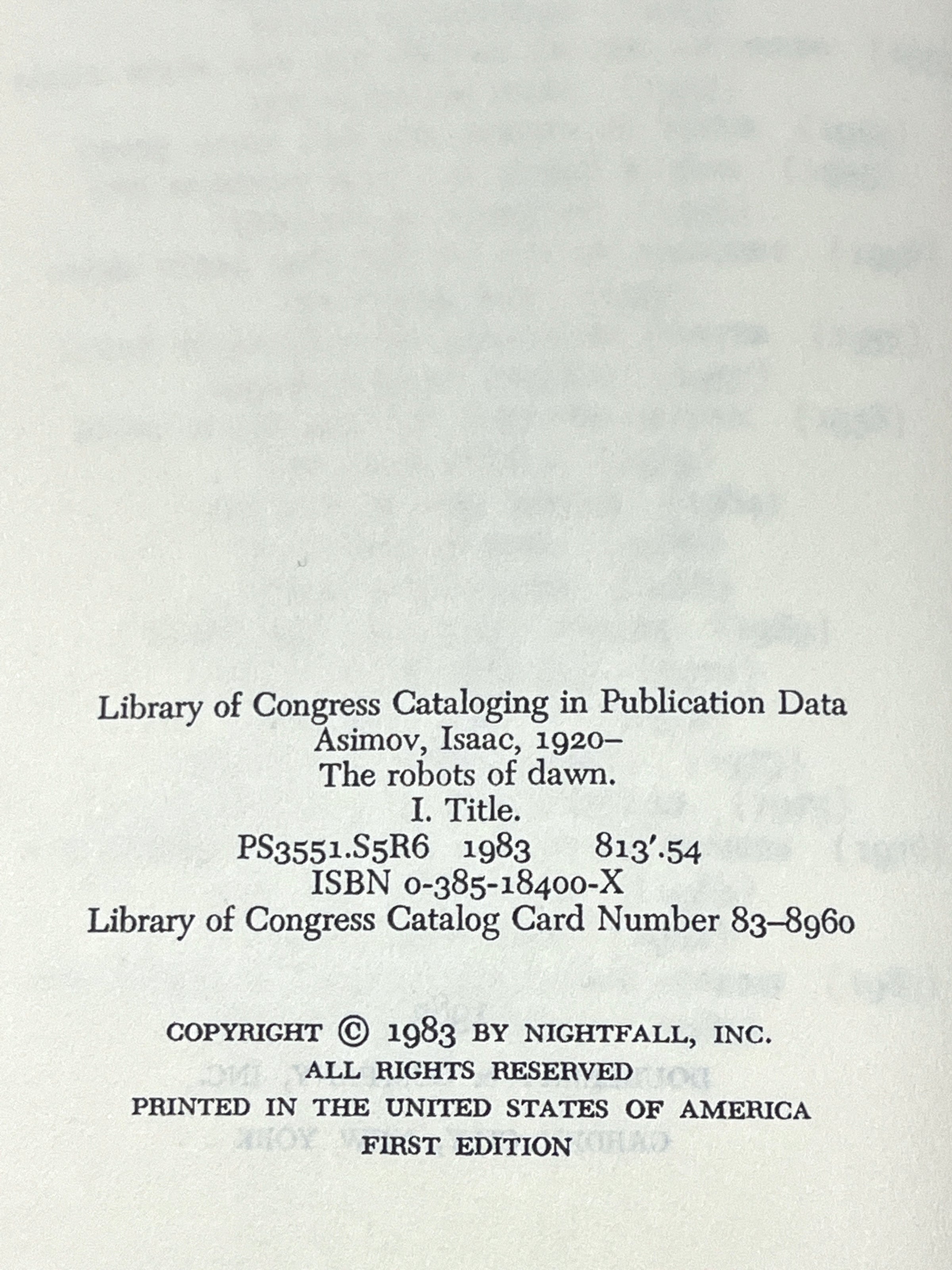 Asimov, Isaac. Garden City: Doubleday & Company, 1983.