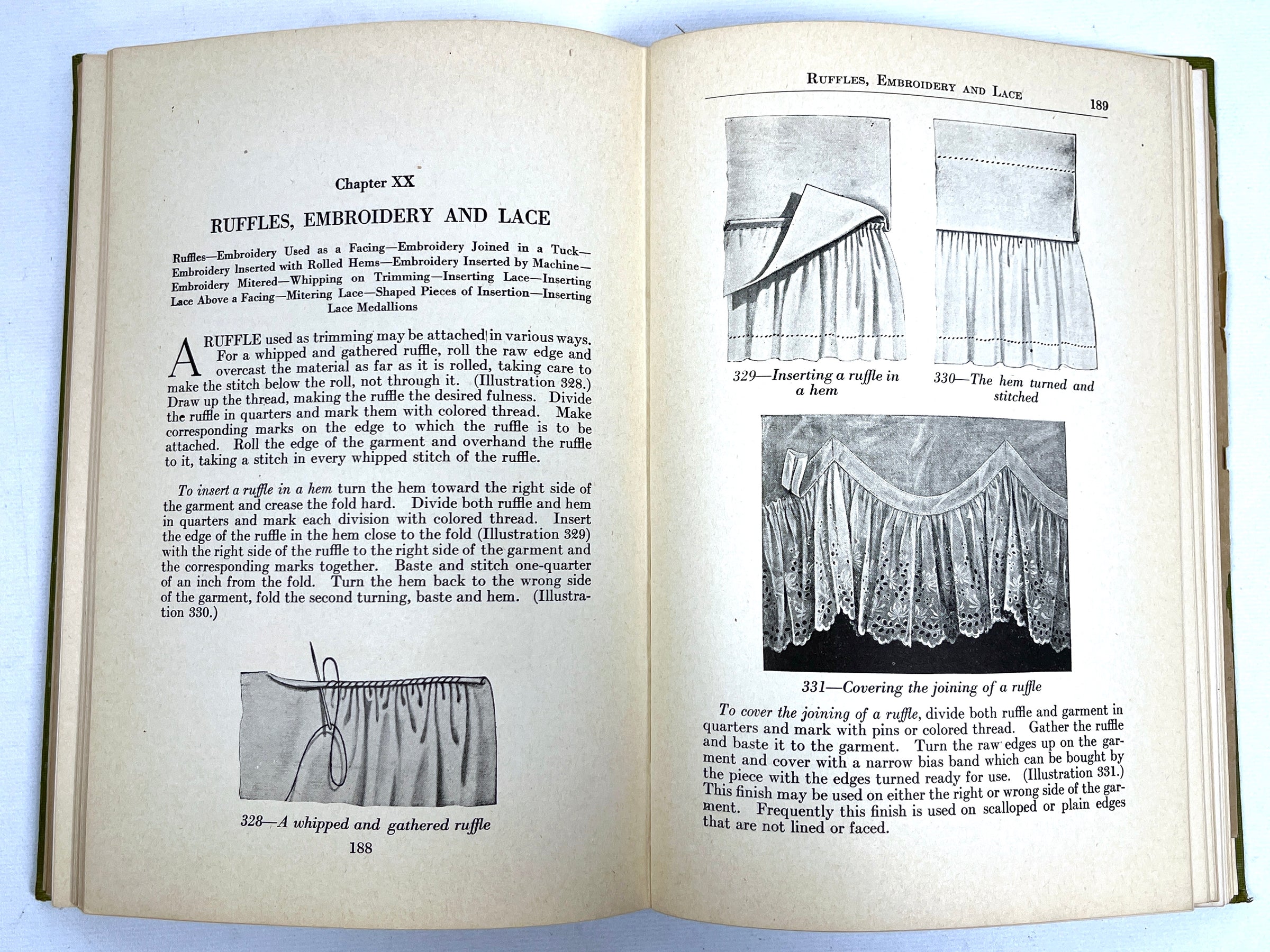 Hardcover in patterned green cloth with stamped lettering and decoration; includes a laid-in and folded Step-by-Step Guide. Some fraying and wear to the head, tail, and tips, light exterior and interior soiling, and minor age-expected toning. 255 pp. Includes black-and-white illustrations and demonstrative images. Helpful how-to guide from the 1920s that leads you from buying patterns, altering and embellishing them, to making the clothing items, and how to clean them afterward. Perfect copy for anyone interested in fashion history and vintage designs.