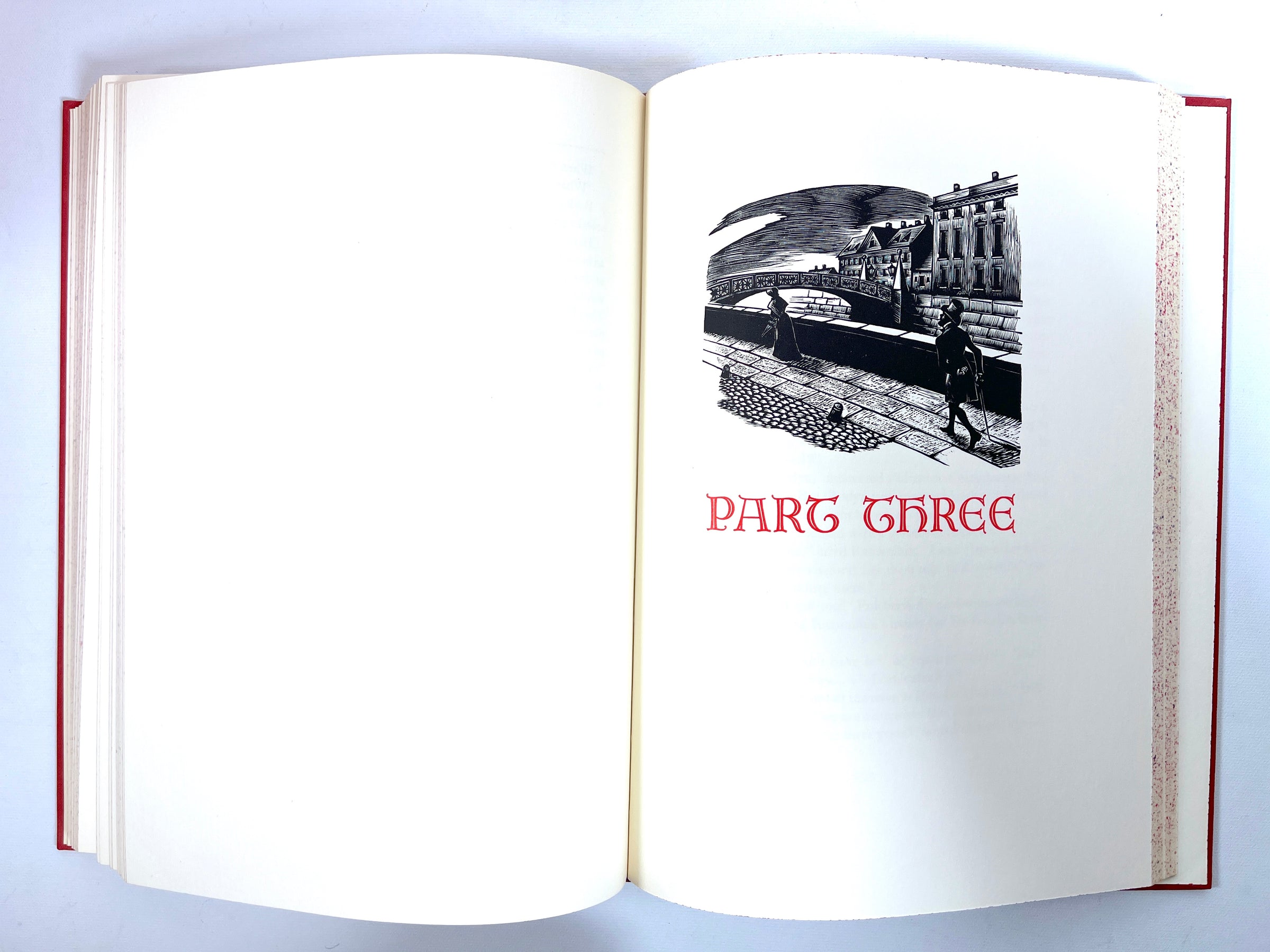 Near Fine octavo, 11 1/2" x 8 3/8". Hardcovers in red cloth over black backing with stamped gilt illustrations on black to the front panels, stamped gilt lettering to spines, and black and red speckling to edges of text block. Minor bump to head of Volume II. Very Good red paper slipcase, no lettering, some exposure to tips of the opening, minor sunning, rubbing to bottom edge, and light soiling.