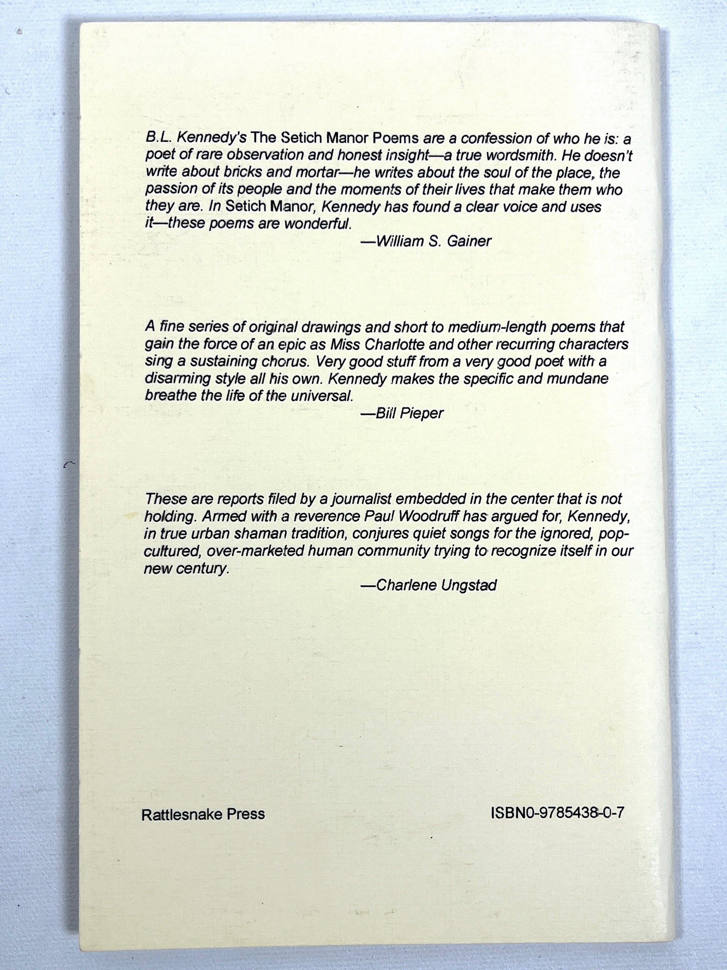 B.L. Kennedy, The Setich Manor Poems, Rattlechips Chapbook Series #25, 2006, NF SC