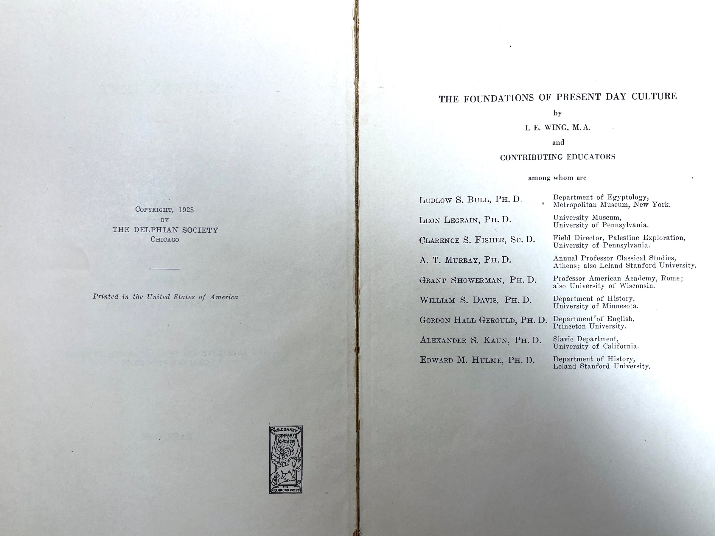 Very Good octavo 9" x 6 1/4", hardcovers in dark red leatherette on limp boards with stamped gilt lettering to front panel and spine. Minor wear and sunning, light interior soiling, some black crumbles throughout the set along corners and endpapers, otherwise attractive. Light annotations to Part Fifteen. Minor tear to page 23- 24 of Part Eighteen. Includes some black-and-white images and a few color images throughout to supplement the material, and marbled endpapers. Published by The Delphian Society, a Chicago-based organization led by Rachel Applegate Solomon that promoted the education of women, thereby creating one of the earliest examples of remote education that can be completed by women in their homes, at their own leisure. Parts One to Five are also labeled with "First Year." Part Nine is titled incorrectly on the binding as Part Five (without the First Year subtitle).