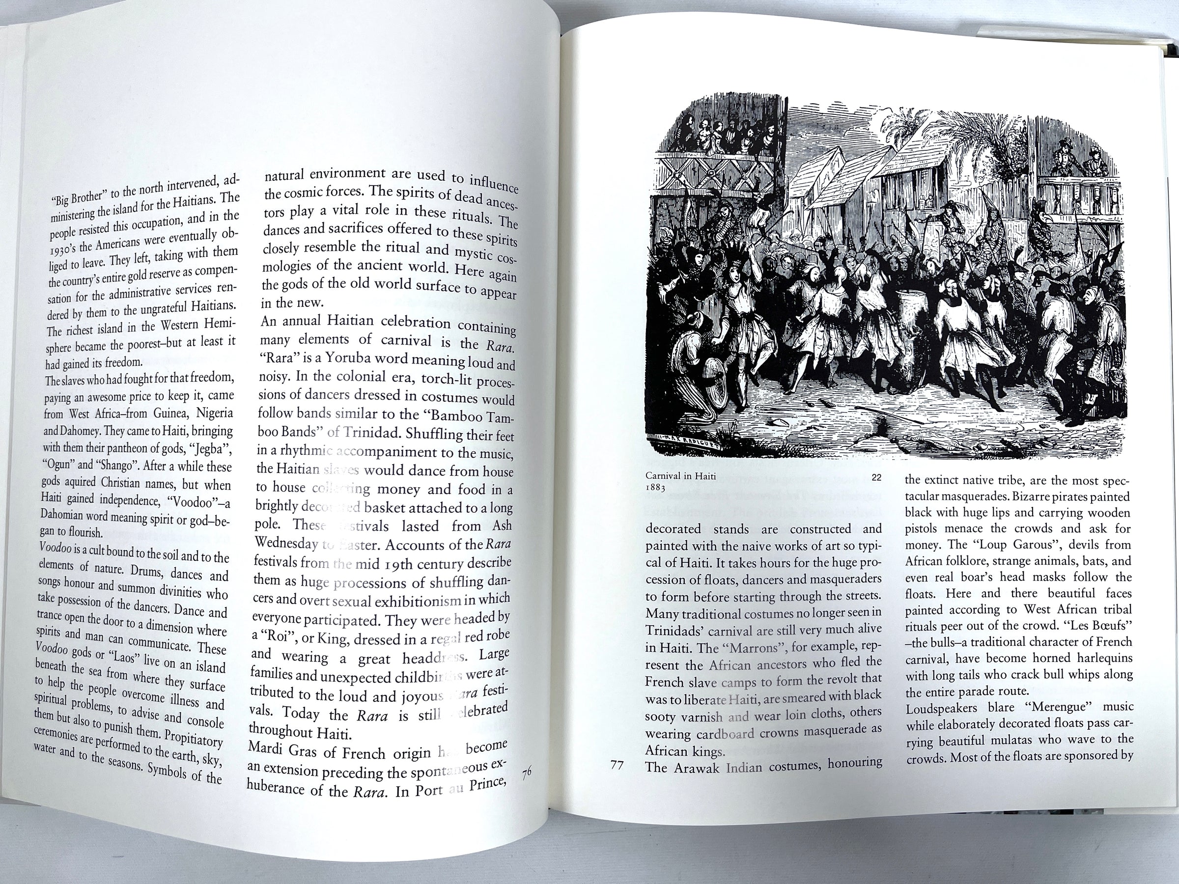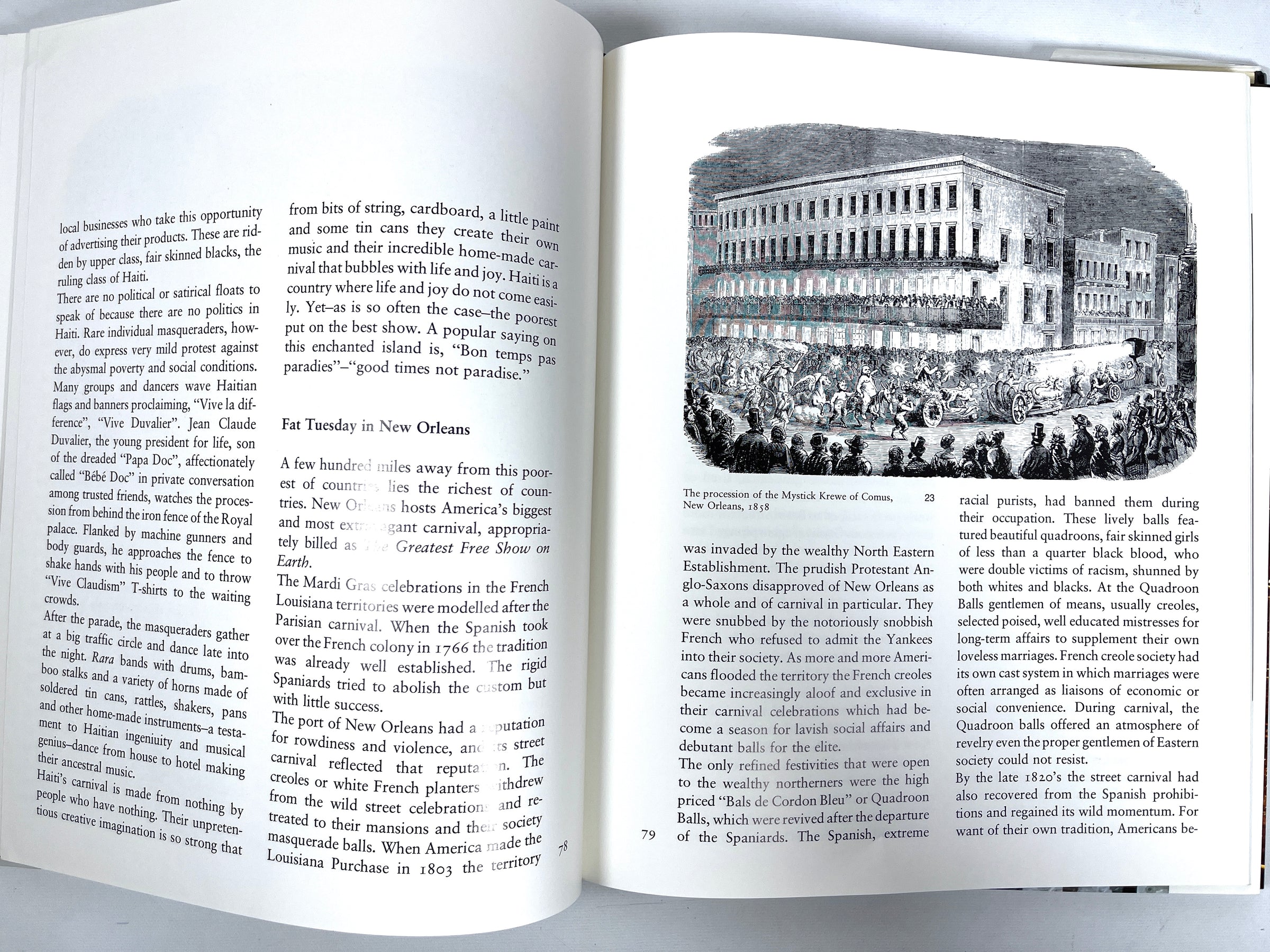 Hardcover in white cloth. Minor wear and soiling to bottom edge, otherwise attractive and tightly bound. Very Good black pictorial dust jacket, some wear to top edge and tips, and light shelf wear to panels, now in Mylar. 260 pp. Includes black-and-white and full-color reproductions of historical illustrations and photographs of carnivals. Traces the history and evolution of carnivals all around the world, including ancient festivals in honor of the gods to celebrate harvest and fertility, to modern day, where the widely appreciated Carnival takes place in Rio de Janeiro.